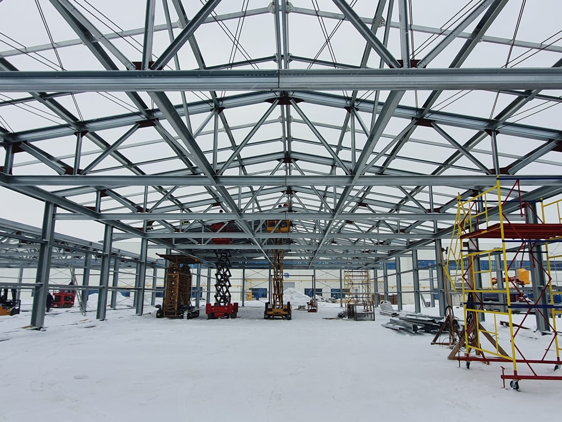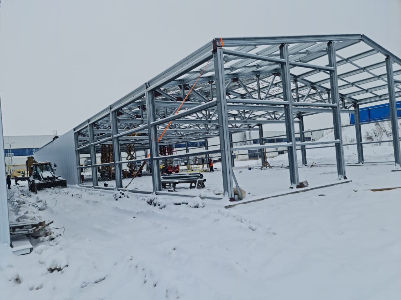 Заказчик обратился с запросом на организацию помещений для хранения и ремонта автопарка. Было предложено оптимизировать массу каркаса с использованием технологии ЛСТК, что позволило сократить металлоёмкость на 25% по сравнению с конструкциями из черного металла. Кроме того, мы выполнили монтажные работы. Срок реализации проекта под теплый контур составил 3 месяца